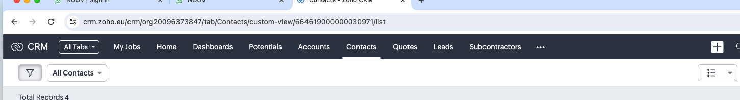 Adding contacts through contacts module– Contacts which shall be linked to the accounts entered above.